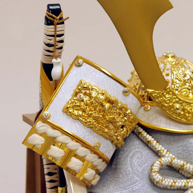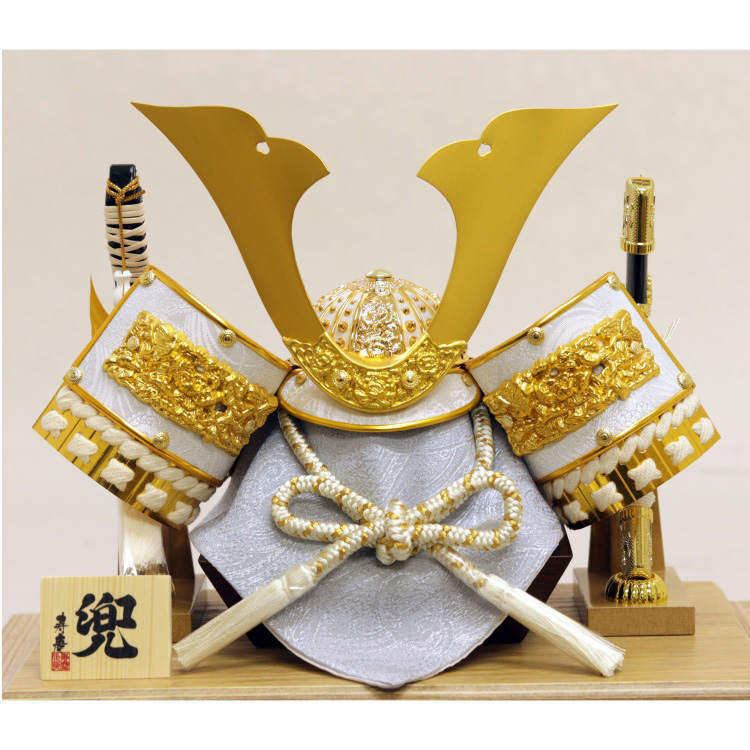 吹返しに金金具を施した黄金鍬形の兜です。