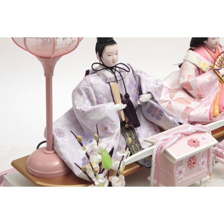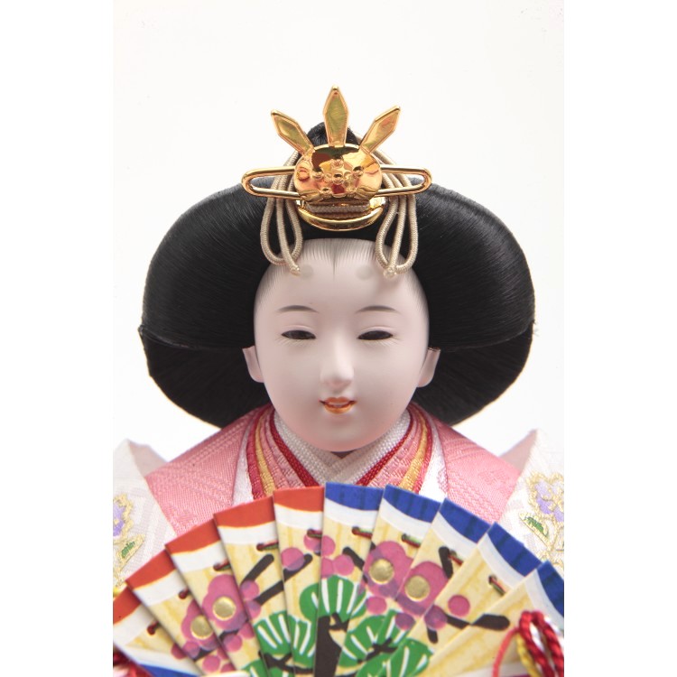 明るい色の衣裳が可愛らしいお雛飾りです。