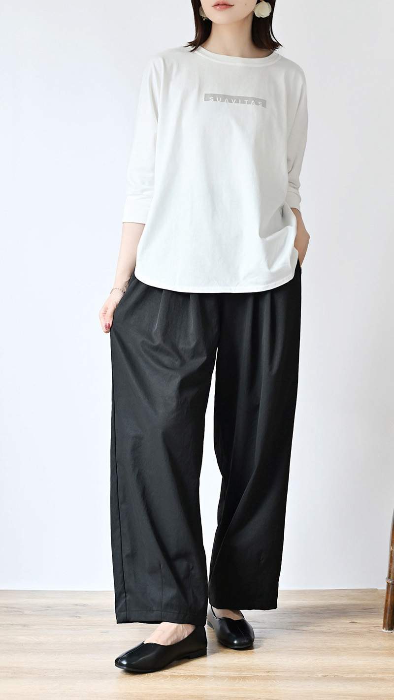 身体のラインを拾いすぎないワイドシルエットと、程よいナチュラルなカーブ感で、はきやすさにこだわりました。
