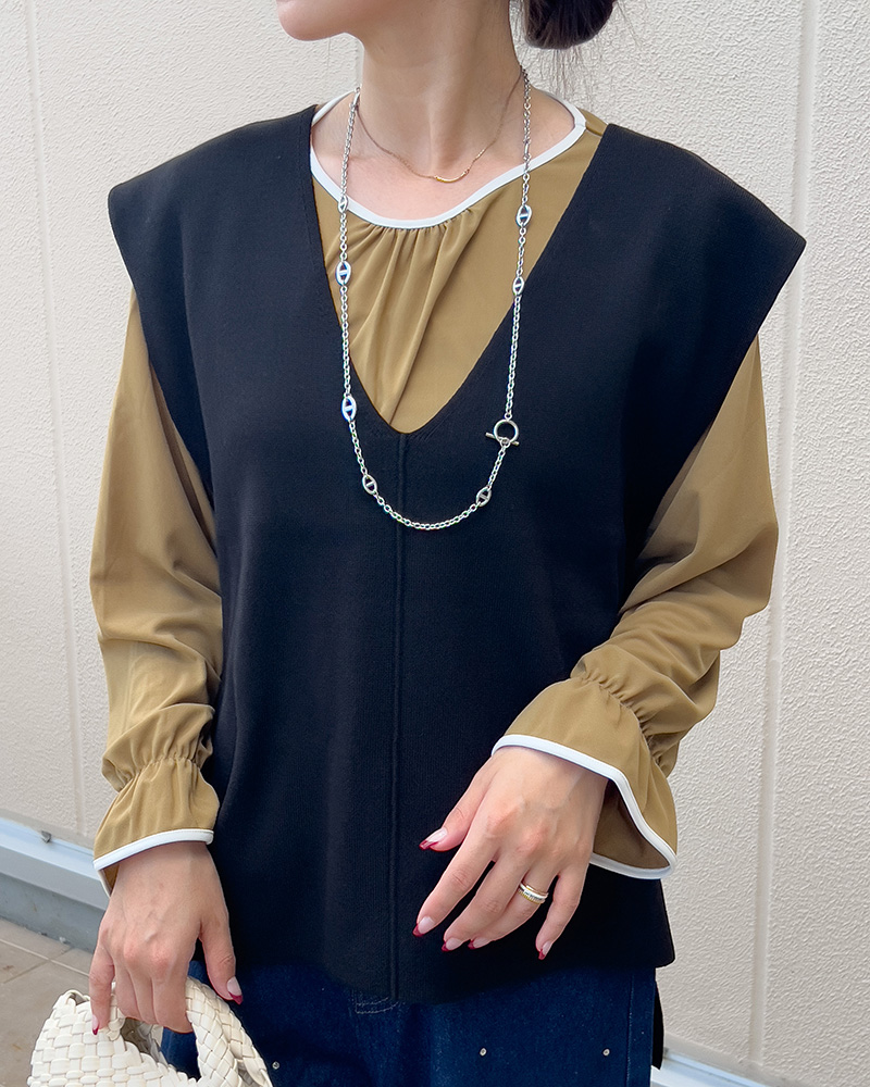 UrbanSmart×rika バイカラーカットブラウス マスタード M 商品番号urbansmart0932309397282074