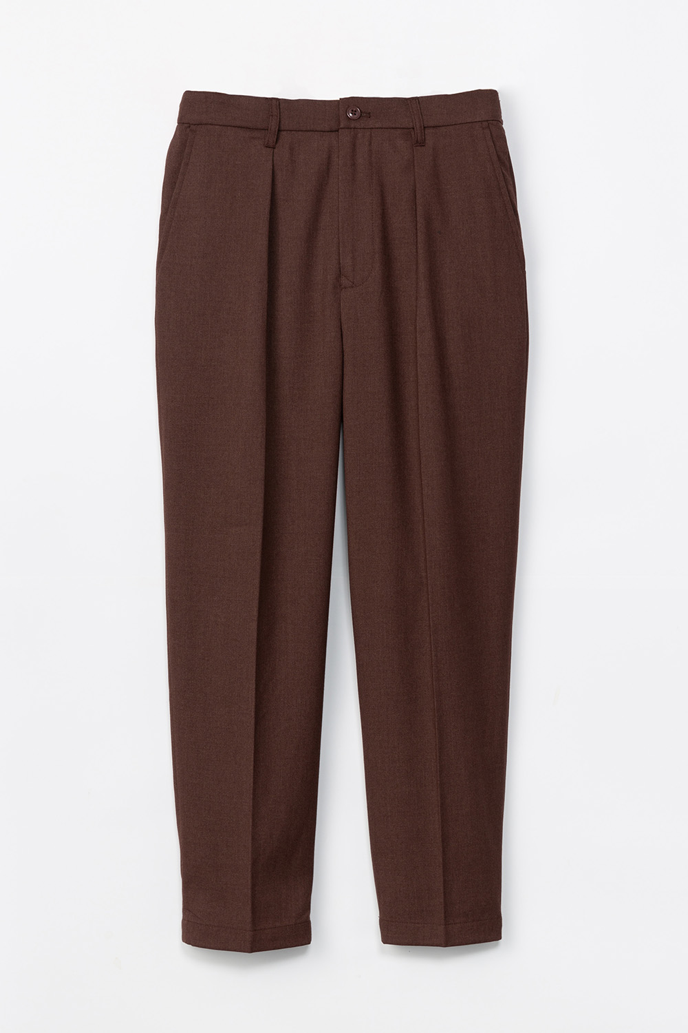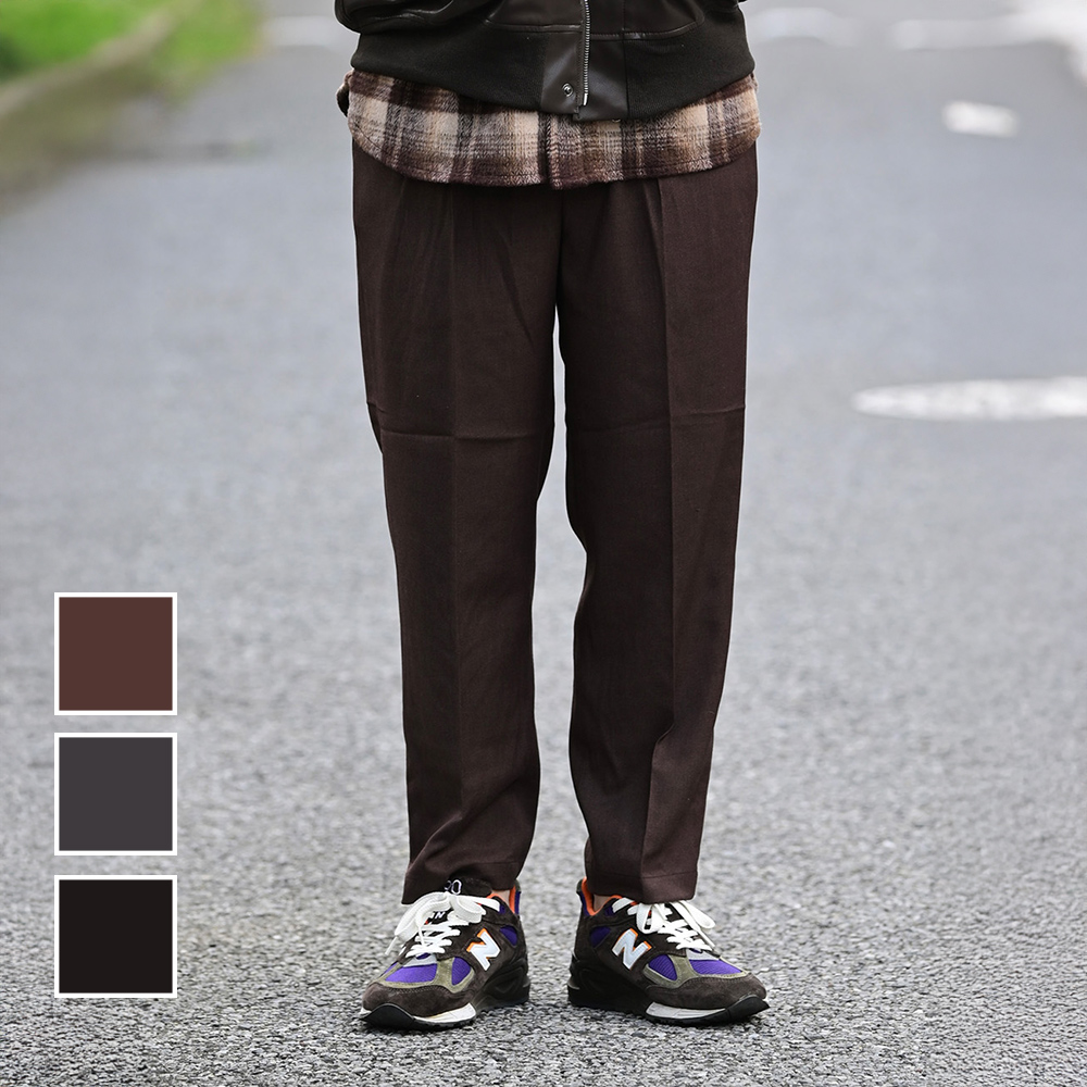 ウールのような表情をもつツイル素材を使用し、シックな印象に仕上げたパンツ。