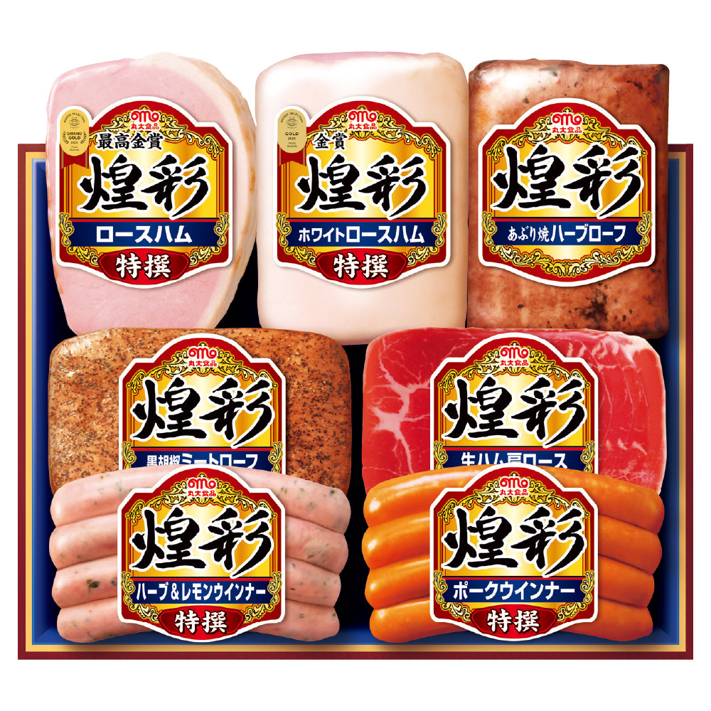 特撰ロースハム180g、特撰ホワイトロースハム350g、あぶり焼きハーブローフ170g、黒胡椒ミートローフ160g、生ハム肩ロース36g、特撰ポークウインナー80g、特撰ハーブ&レモンウインナー80g