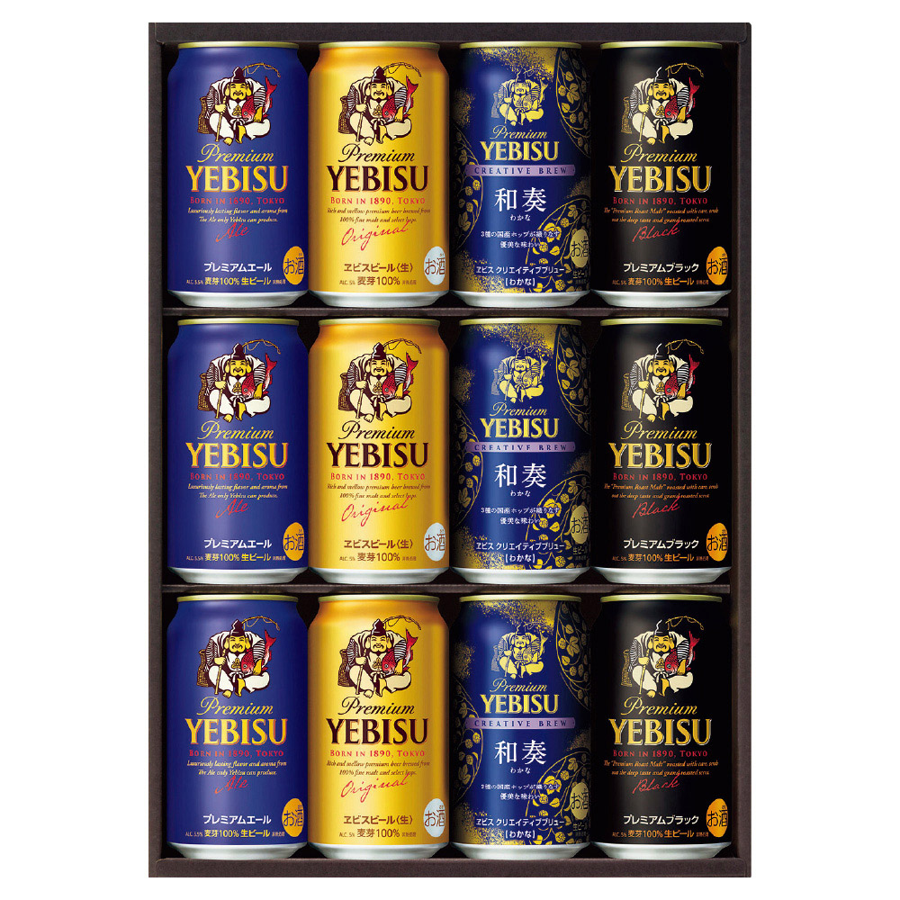 ヱビスビール缶350ml×3、ヱビス クリエイティブブリュー和奏缶350ml×3、ヱビス プレミアムエール缶350ml×3、ヱビス プレミアムブラック缶350ml×3