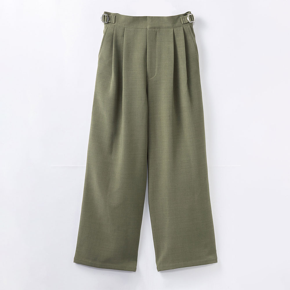 腰回りにゆとりをもたせたダブルタックシルエットで、