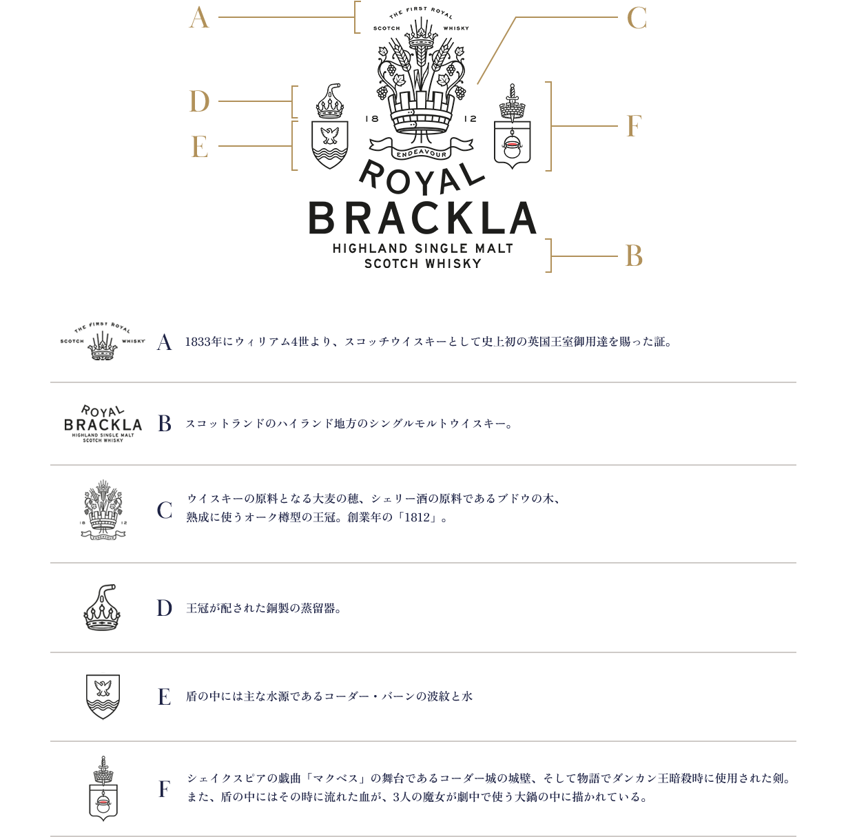 1812年にキャプテン・ウィリアム・フレイザーによって設立された ロイヤル・ブラックラ蒸溜所。1833年には、 ウイリアム4世からウイスキーとして初めての英国王室御用達と 「Royal」の称号を賜り、 ”The King’s Own Whisky”(王のためのウイスキー)とも言われています。 歴史上、最初に英国王室御用達を受け賜わった シングルモルトウイスキーがロイヤル・ブラックラです。